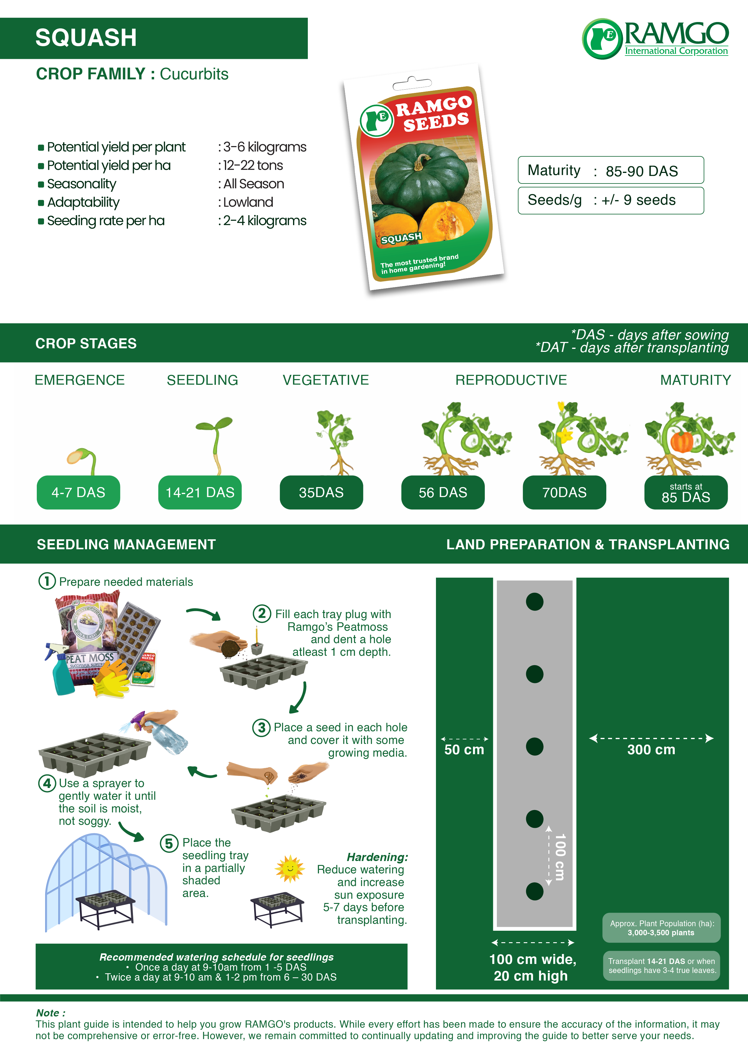 Squash grows best in warm weather and spacious garden plots with well-aerated, fertile soil. It benefits from full sun and regular watering, producing vigorous vines and large, broad leaves. Typically planted at the start of the dry season, it can thrive for several months until the fruits are ready for harvest. Squash is rich in fiber, vitamin A, and potassium—great for eye health and digestion. Its firm, yellow-orange flesh and subtly sweet flavor make it a favorite in soups, stews, and local dishes. A robust crop that rewards gardeners with heavy yields and culinary versatility.